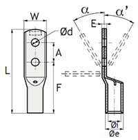 ?    For bent terminals, specify α or α' (α max. 90° - α' maxi 45°)